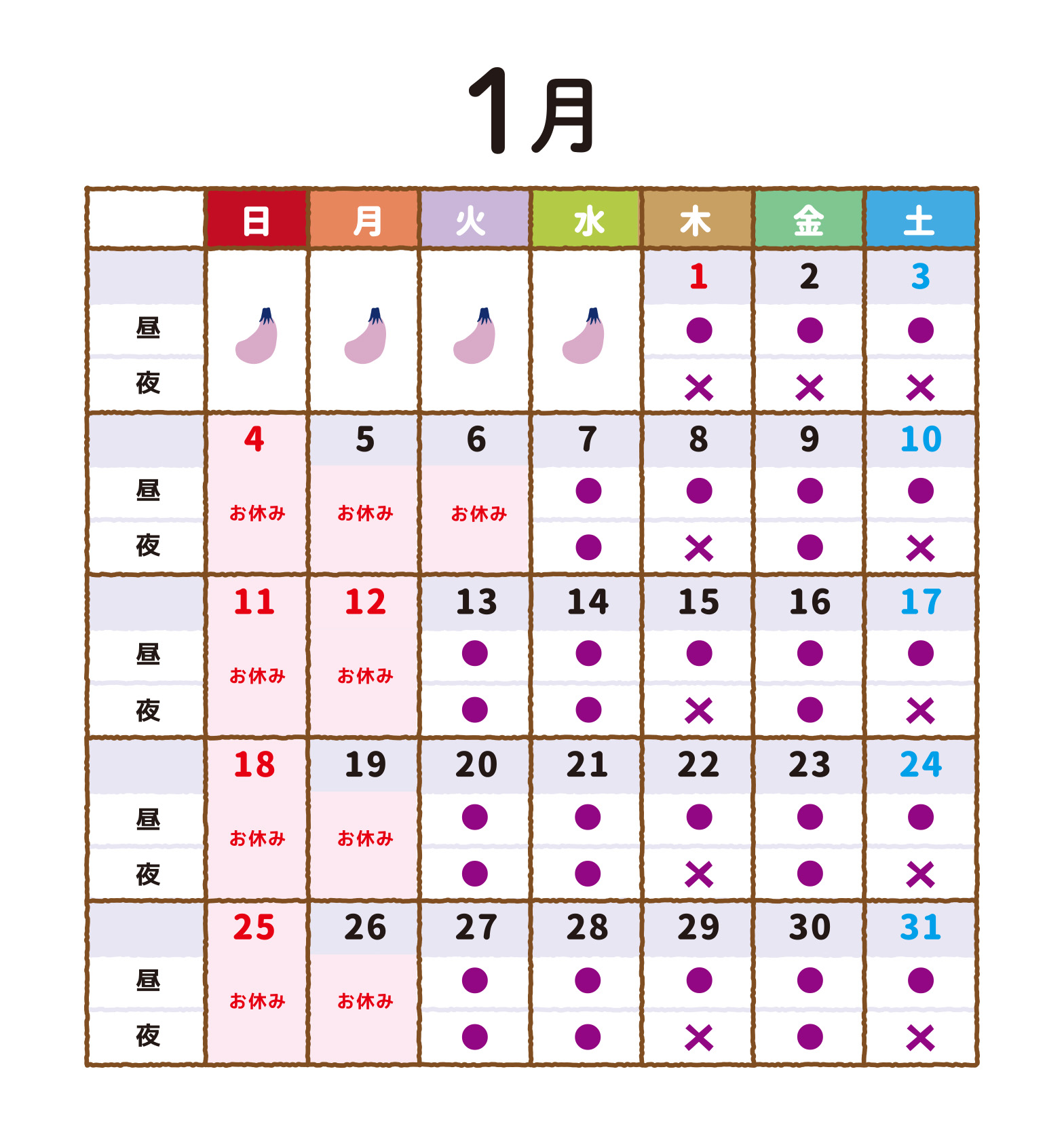 年始の営業のご案内です。2026年1月1日〜3日、昼の部営業いたします。
